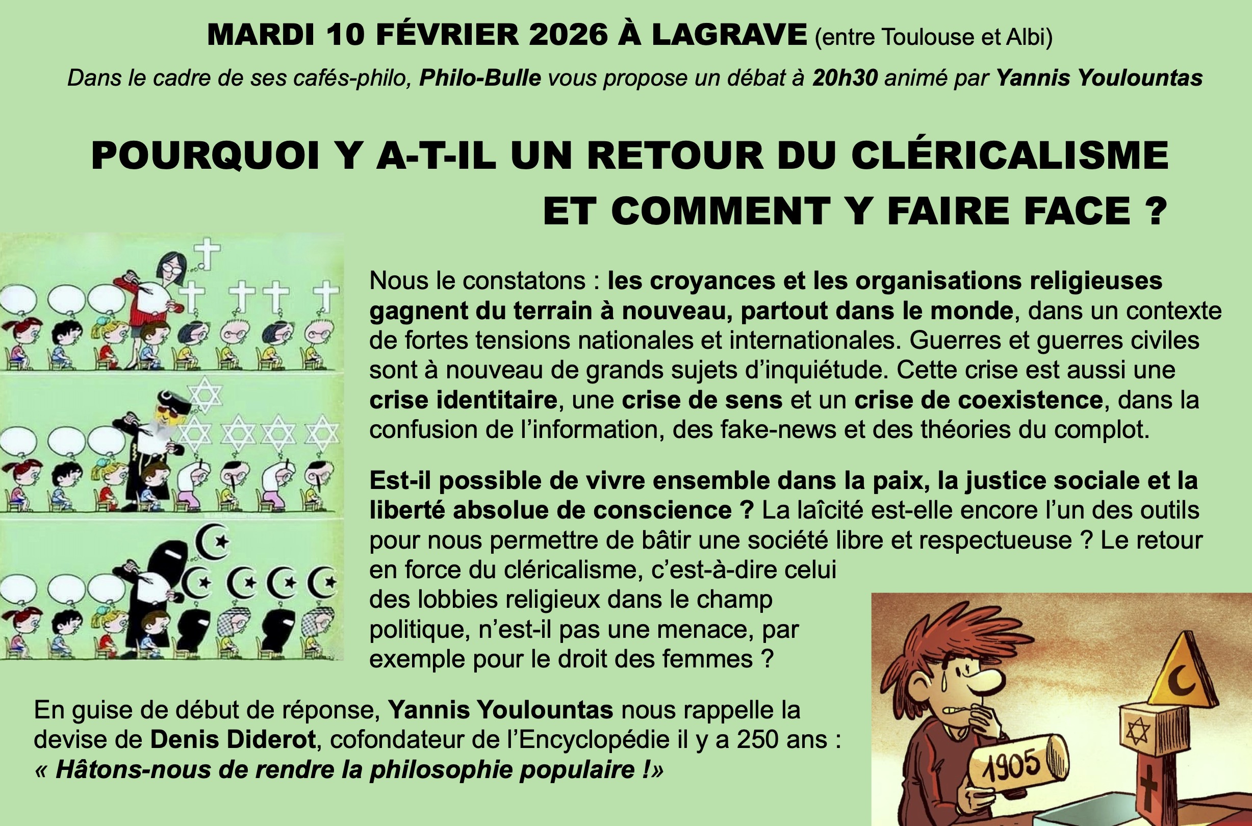 20h00 : Café-philo « Pourquoi y a-t-il un retour en force du cléricalisme et comment y faire face ? »